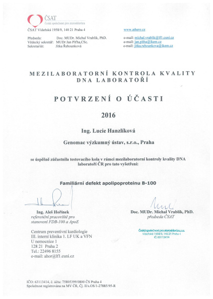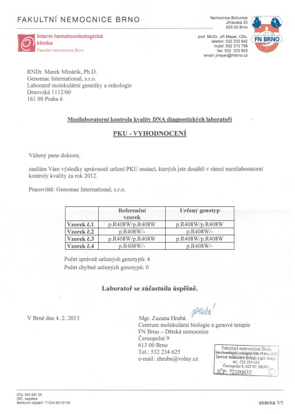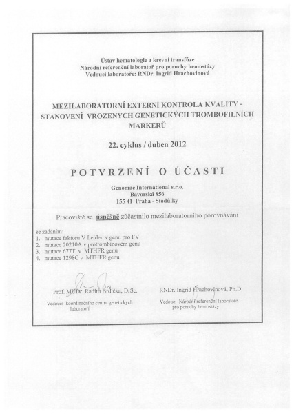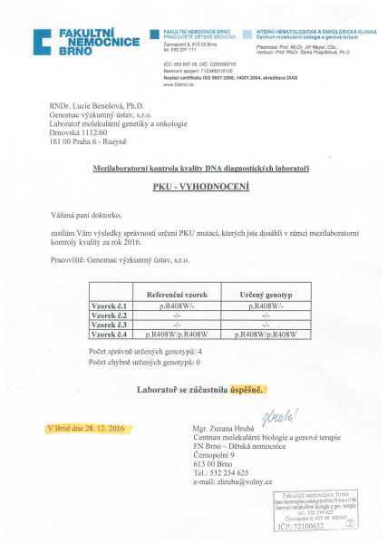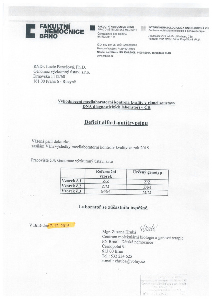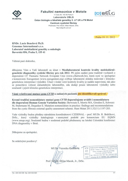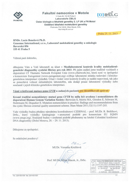 Od roku 2009 sme autorizovaným distribútorom DNA testov s možnosťou osobného doručenia. DNA testy, ktoré rozvážame, spracováva a vyhodnocuje akreditované laboratórium Genomac výzkumný ústav, s.r.o., založené v roku 2001. Genomac je najväčšie súkromné výskumné pracovisko v ČR poskytujúce genetické testovanie so štatútom Neštátne zdravotnícke zariadenie a Znalecký ústav v odbore genetika. Zameriava sa na genetické testovanie pre odbornú i širokú verejnosť a výskum v oblasti molekulárnej onkológie s bohatou publikačnou aktivitou. Viac tu (článok „O nás“).